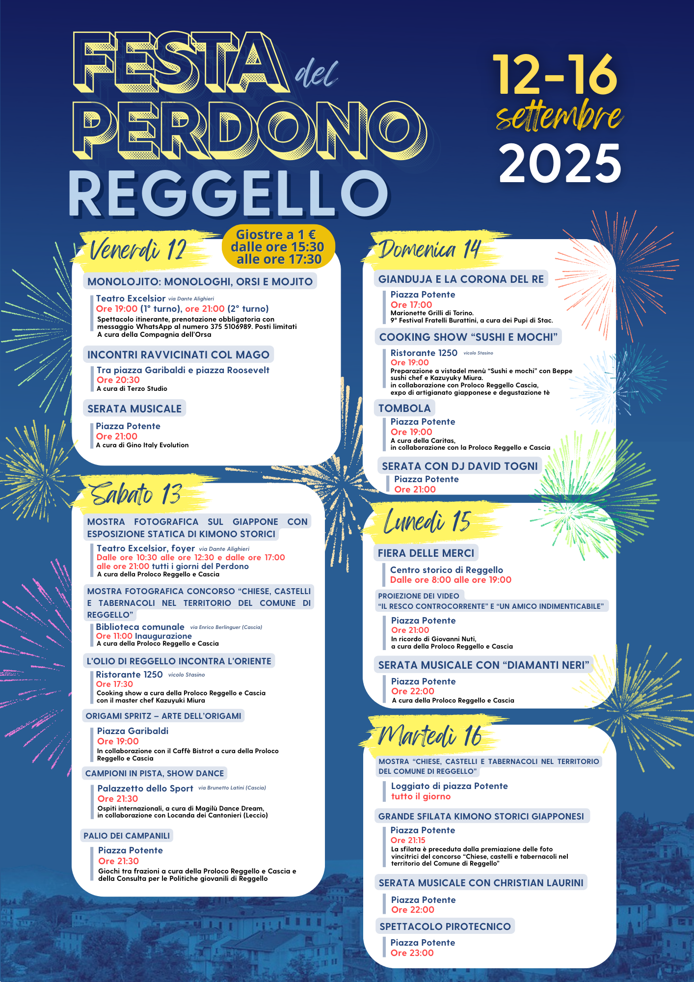 La Festa del Perdono 2025 si presenta così come un’occasione di incontro tra tradizione e apertura culturale, con un programma che intreccia le radici locali e lo sguardo verso l’Oriente, grazie alla collaborazione con la Proloco Reggello Cascia.