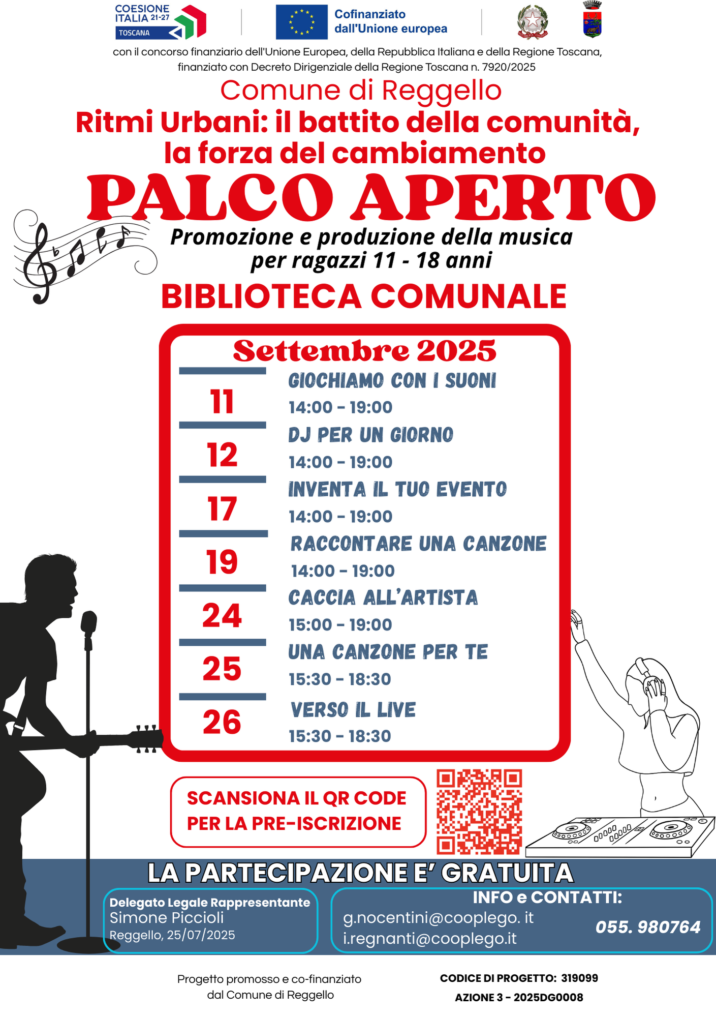 Il Comune di Reggello lancia Ritmi Urbani: il battito della comunità, la forza del cambiamento, un nuovo percorso dedicato alla promozione e produzione musicale pensato per ragazze e ragazzi dagli 11 ai 18 anni.
