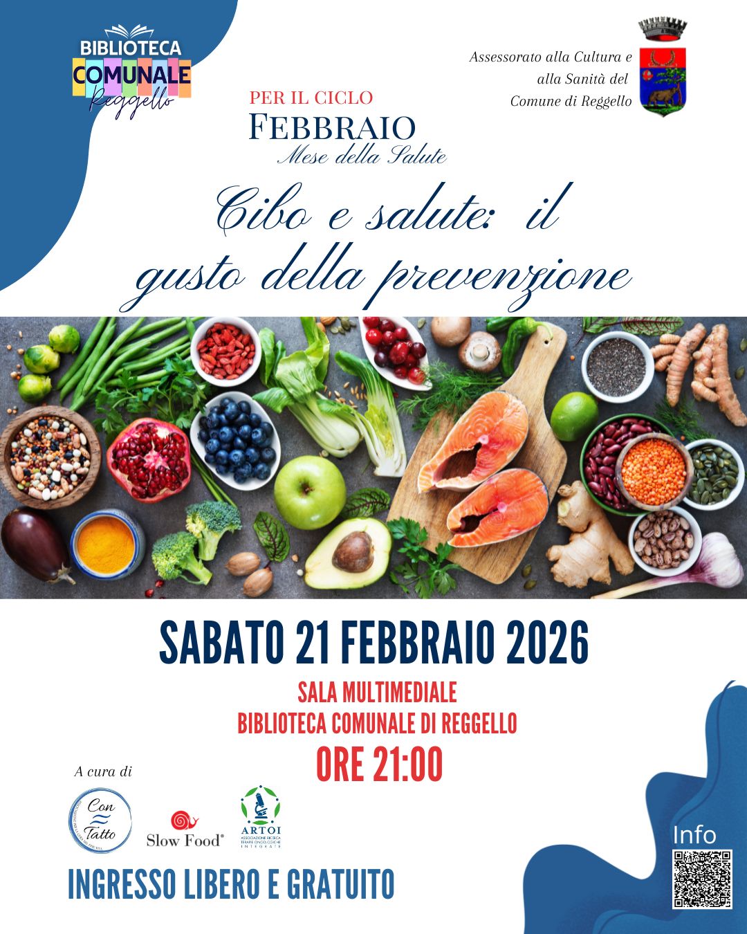Il tema dell’alimentazione sarà al centro dell’appuntamento di sabato 21 febbraio alle ore 21 con “Cibo e salute: il gusto della prevenzione”, insieme al dott. Massimo Bonucci, Presidente A.R.T.O.I., medico oncologo. Iniziativa a cura di Slow Food e A.R.T.O.I., in collaborazione con l’Associazione Con-Tatto.