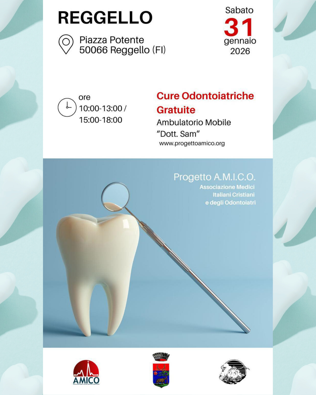 Sabato 31 gennaio sarà attivo a Reggello un servizio di cure odontoiatriche gratuite rivolto alla cittadinanza.