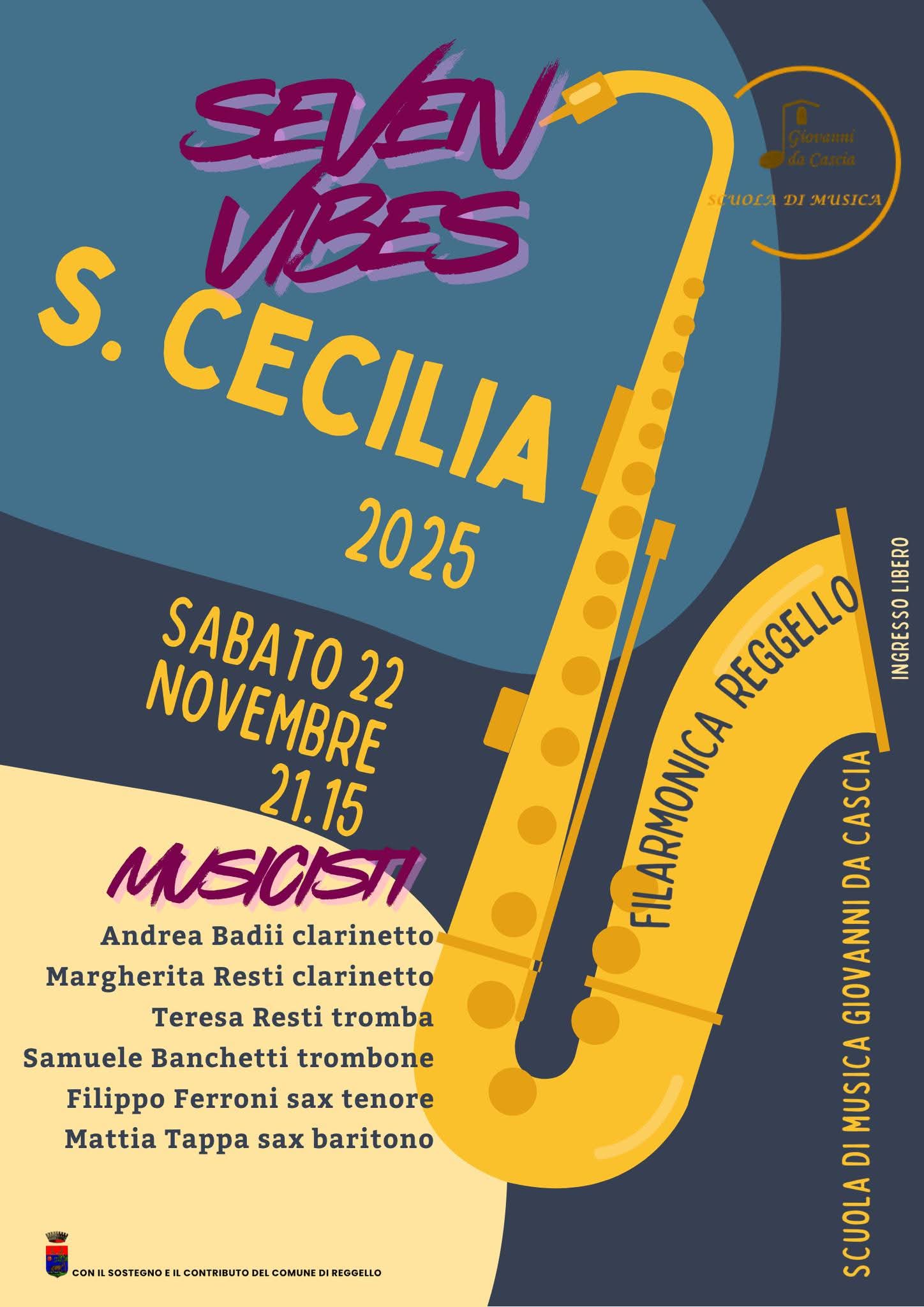 Sabato 22 novembre, alle ore 21.15, la Filarmonica di Reggello ospiterà il concerto “Seven Vibes”, appuntamento dedicato alle celebrazioni di Santa Cecilia.